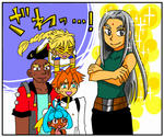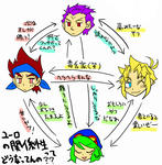 前に炎の聖獣使いをまとめた絵を描いた時、ゼオは使用ベイの名前ほどバーニングしていなかった様な気がしたので除外したのですが、アニメだと普通にバーニングしてましたね。後でつけたそうかなあ。