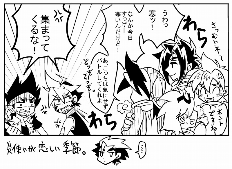 レイは元から前髪が真ん中分けなのでそこまで変化はないのですが、タカオ、カイ、マックスの前髪がカッ!って上がって普段と全然違う髪型になるのがすごくカッコイイと思います。